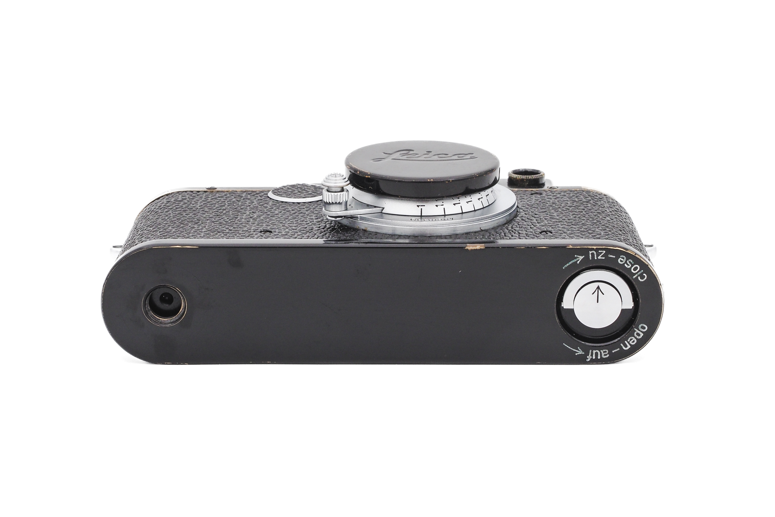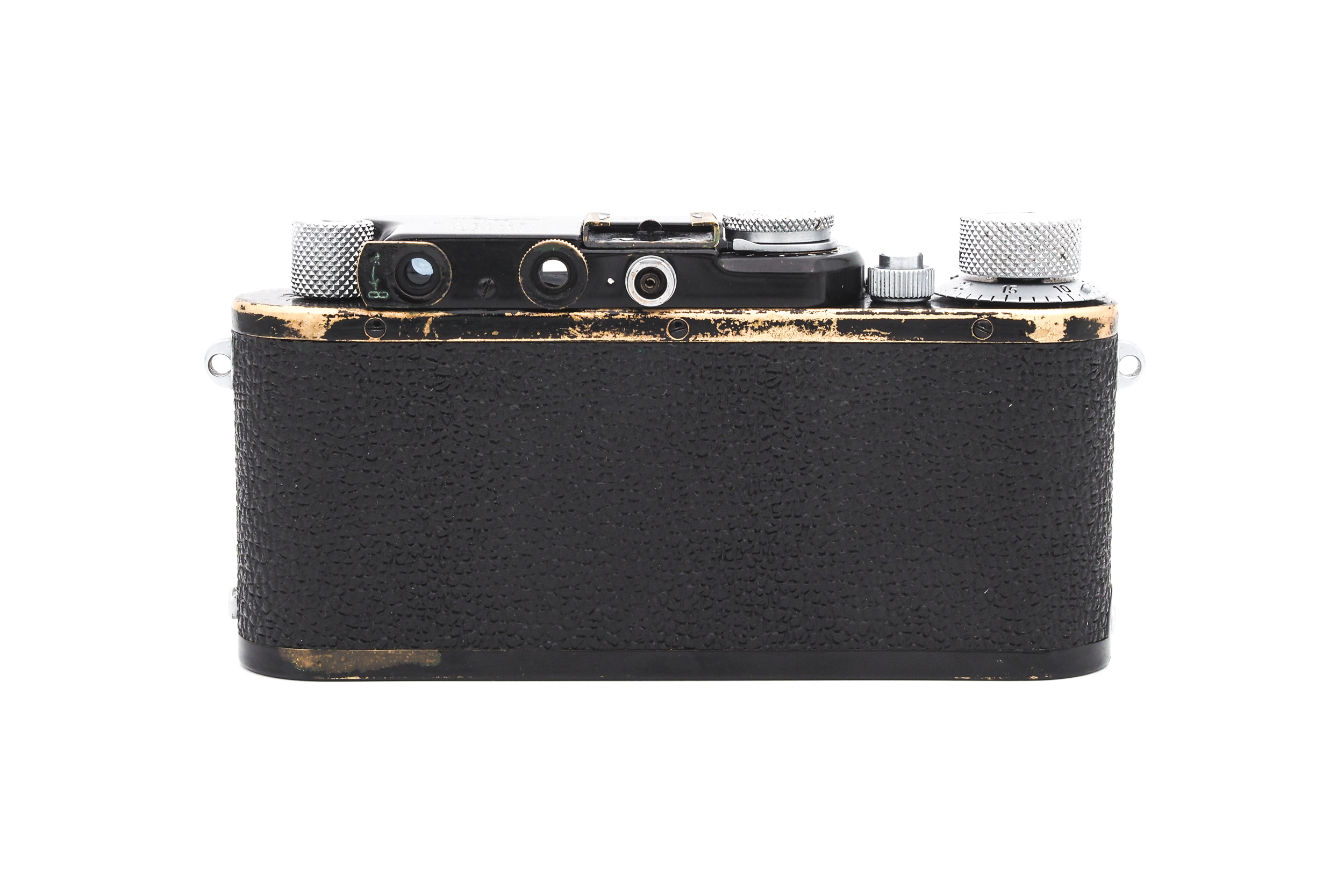 Leica Werkskonvertierung zu Leica IIa sync. in 1952. In diesem Prozess wurde die Kamera neu lackiert und das Objektiv in ein modernes red scale Elmar transferiert.
